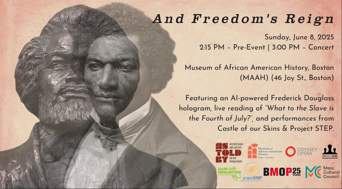 ???? Special guests include Douglass and Booker T. Washington descendants, Nettie Washington Douglass and Kenneth B. Morris Jr. of the Frederick Douglass Family Initiatives, Nicole Morris (Les Misérables), Dr. J. Jacques Carter (Harvard), Massachusetts Inaugural Poet Laureate Regie Gibson, Douglass scholar Dr. Noelle Trent, President & CEO of the Museum of African American History | Boston & Nantucket, and more.