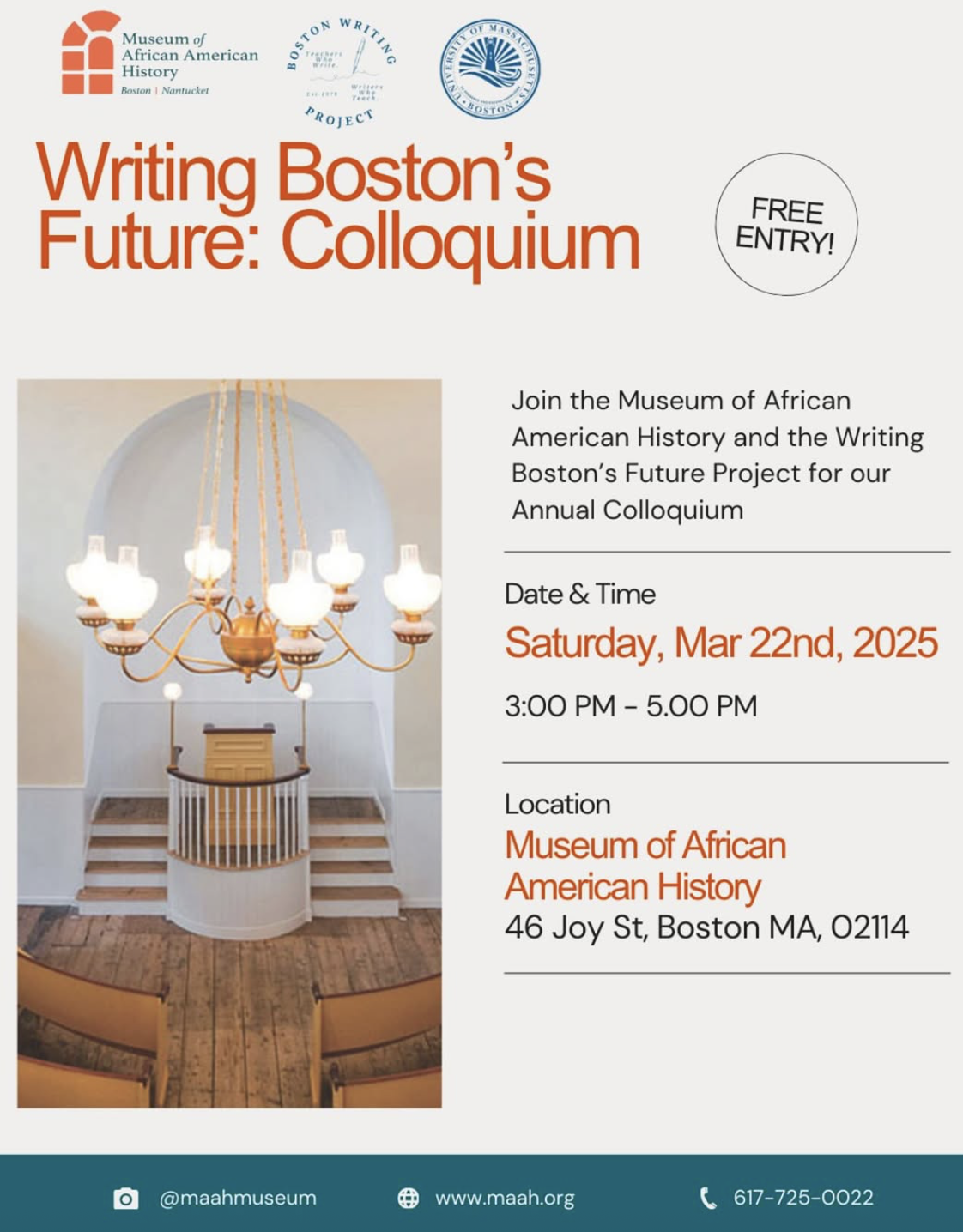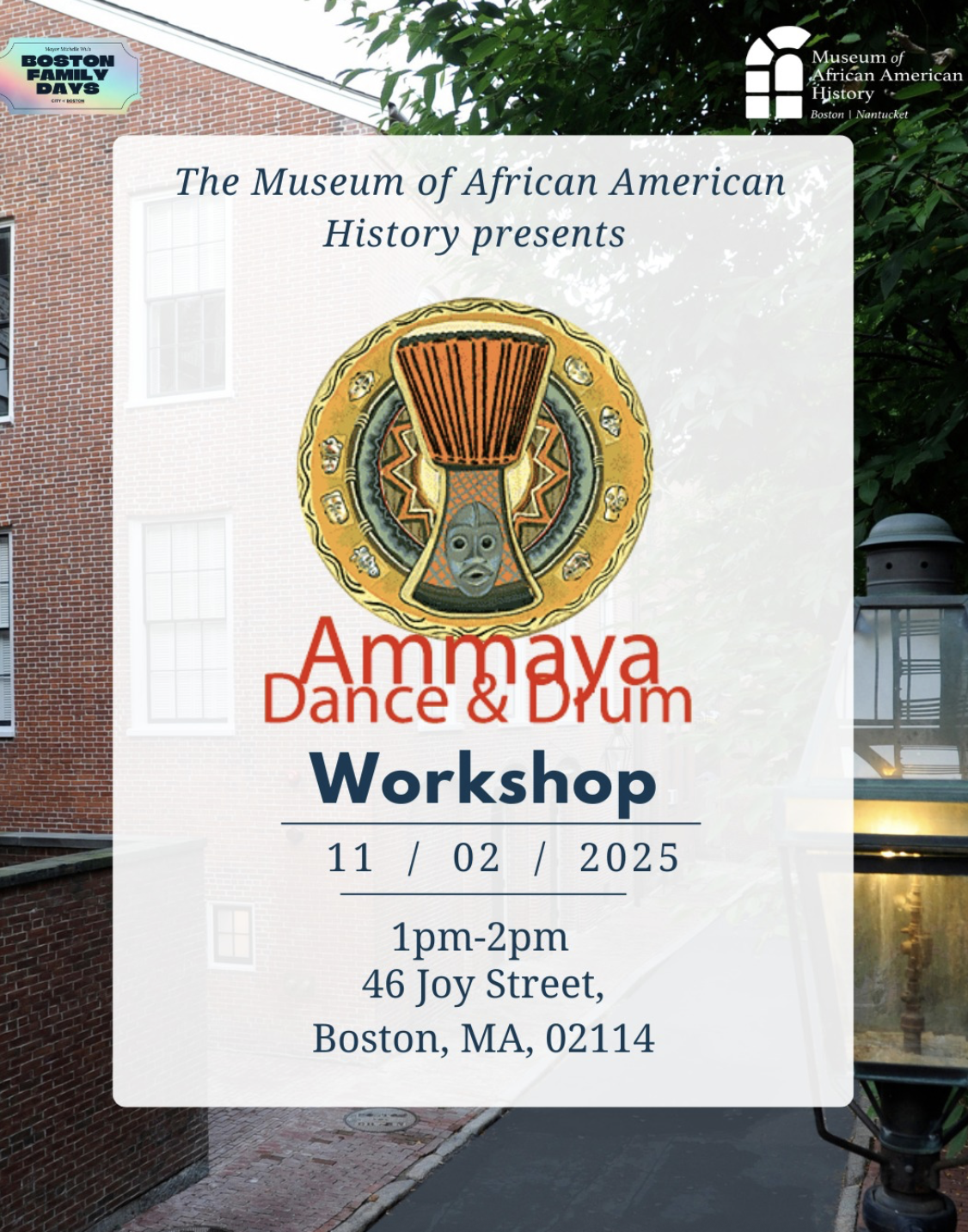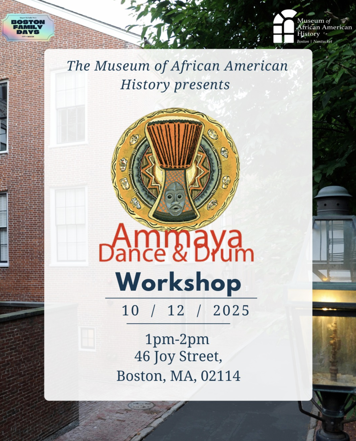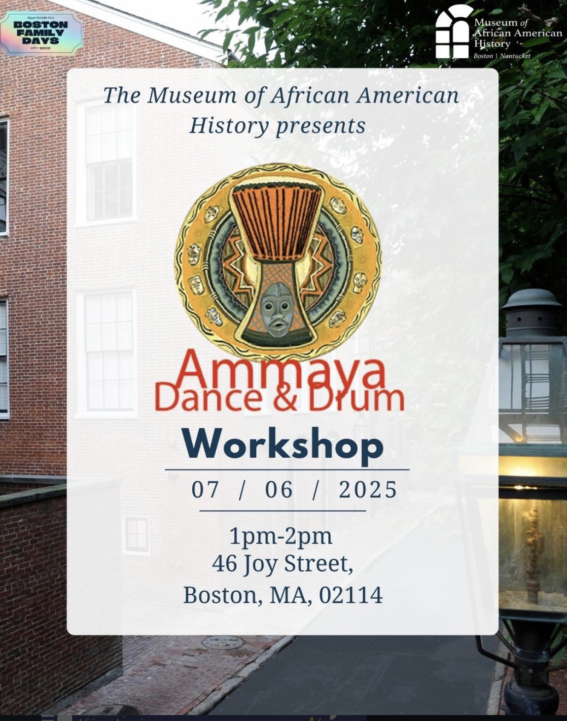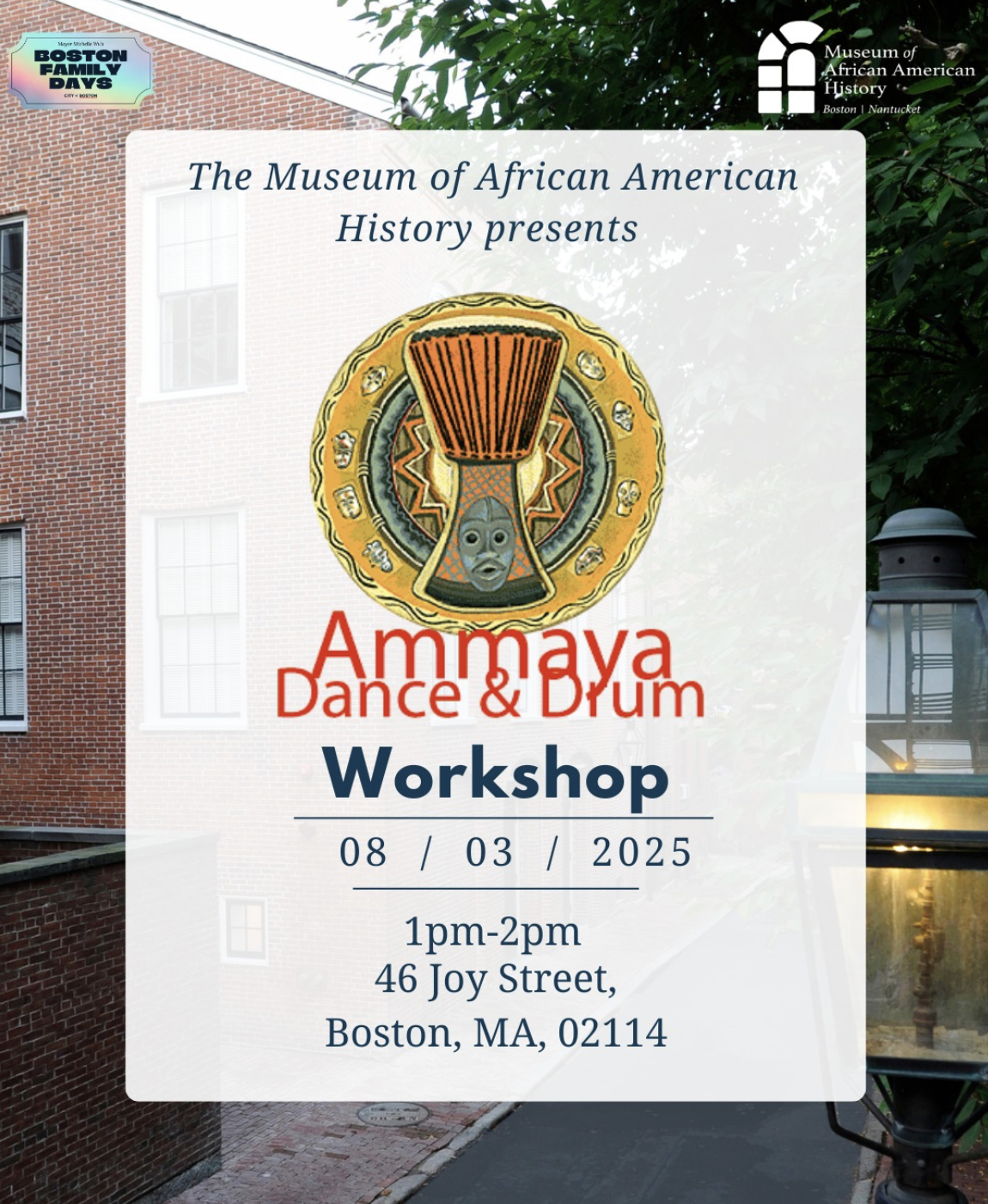 ???? **Location:** Museum of African American History, 46 Joy St, Boston, MA 02114
