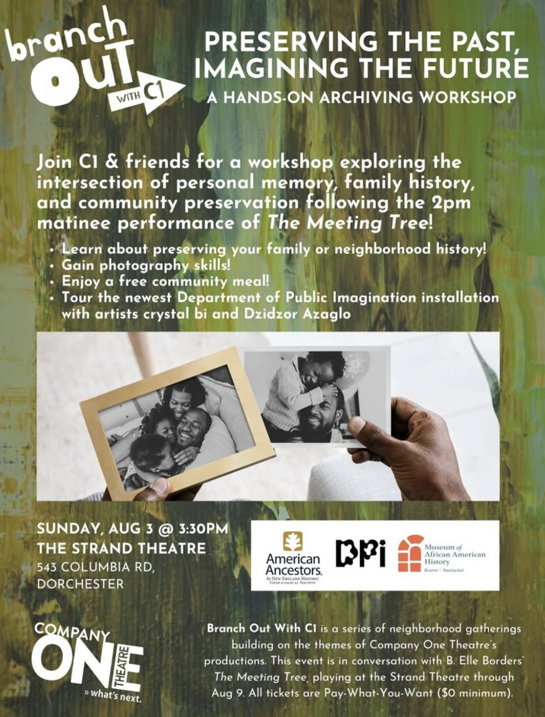 Archive your own family or neighborhood history through a hands on-archiving workshop hosted by Company One, Department of Public Imagination, American Ancestors and MAAH!
