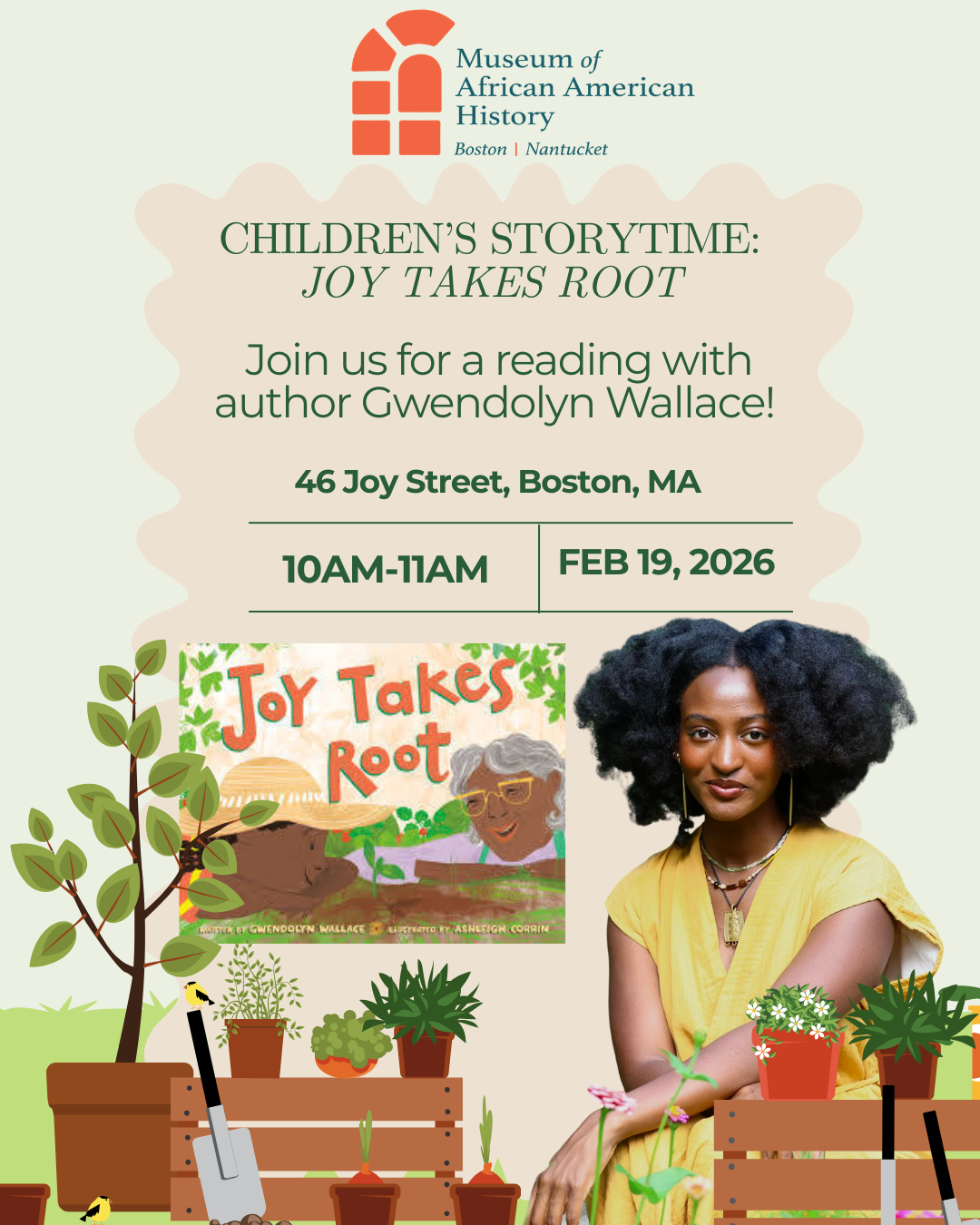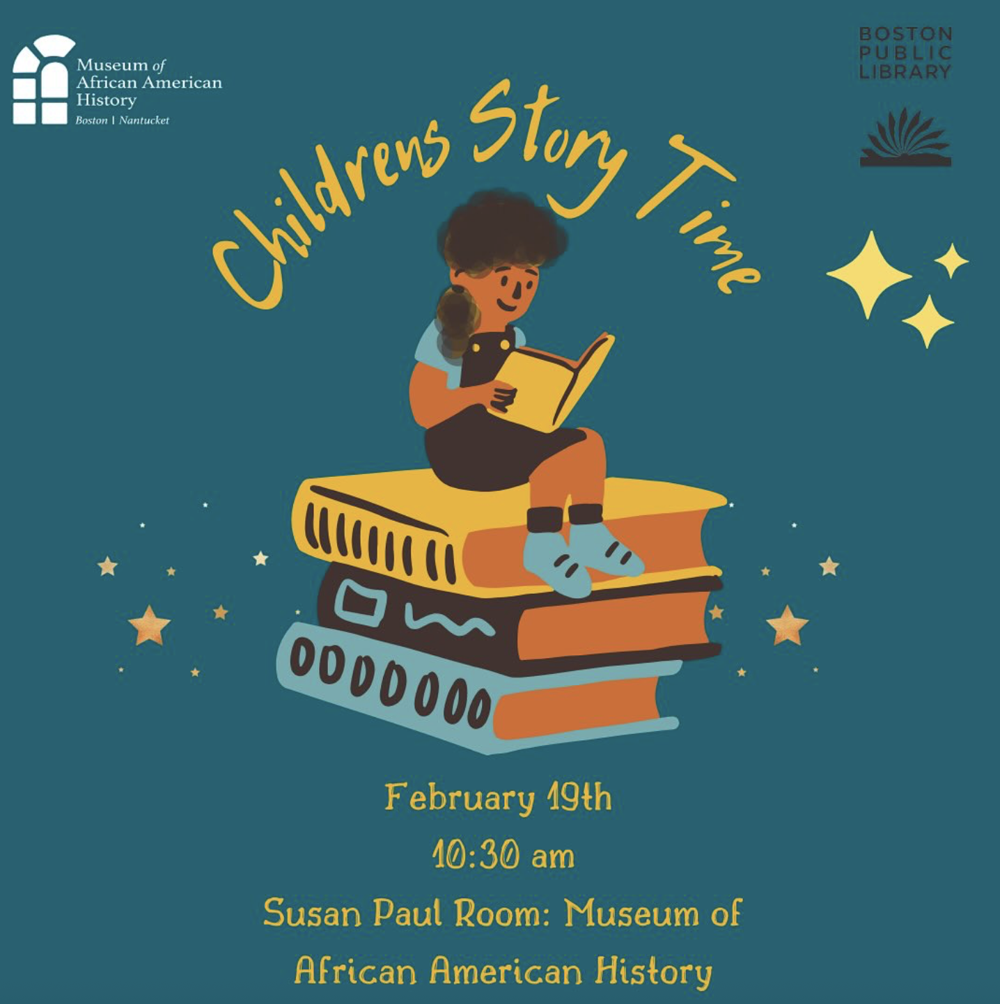 Join the Museum of African American History in the Susan Paul Room for a Black History Month Story Time. Get ready to sing, laugh, and clap along as we celebrate Black History Month.
