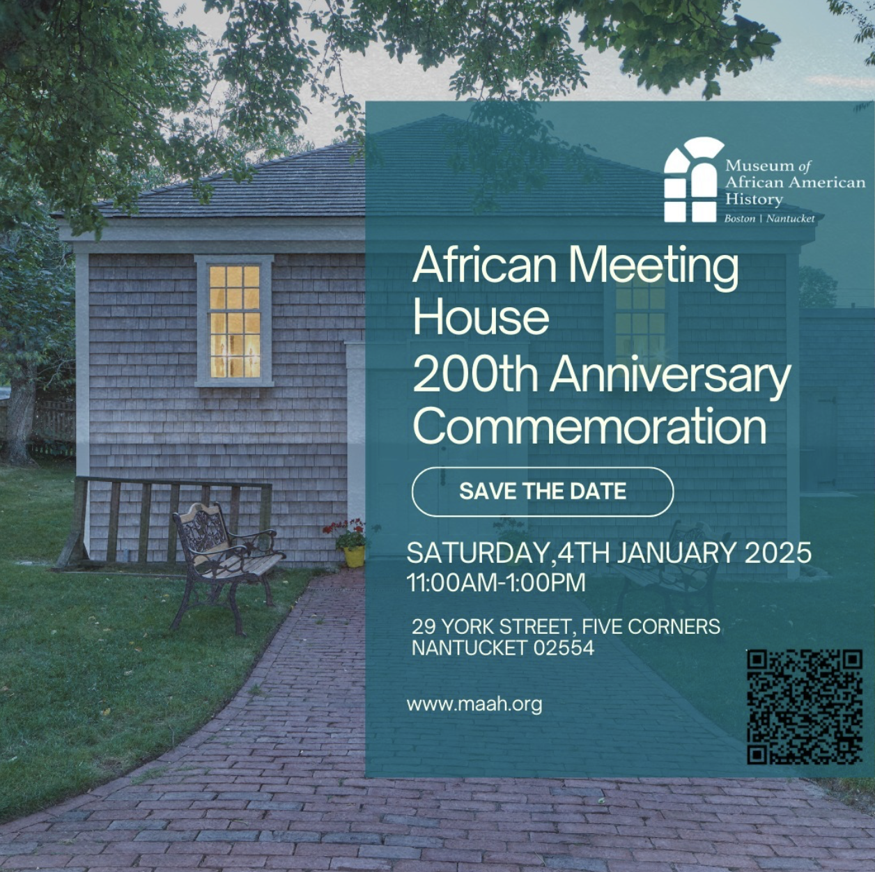 See you this Saturday!! Join us for the 200th Anniversary of commemorating the African Meeting House in Nantucket. This event is free and open to the public; limited seating is available.