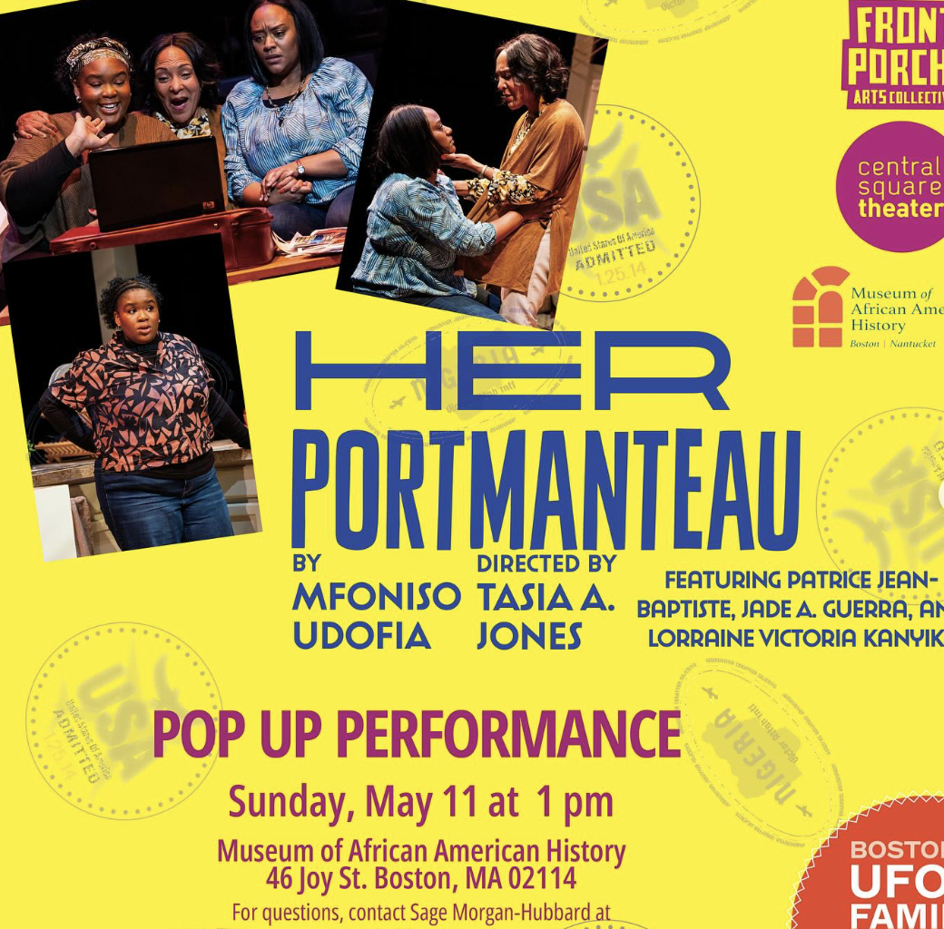 Join the Museum of African American History, in collaboration with the Front Porch Arts collective and Central Square Theatre, for a special pop-up reading of Her Portmanteau. A Q&A with the actors will follow the reading.