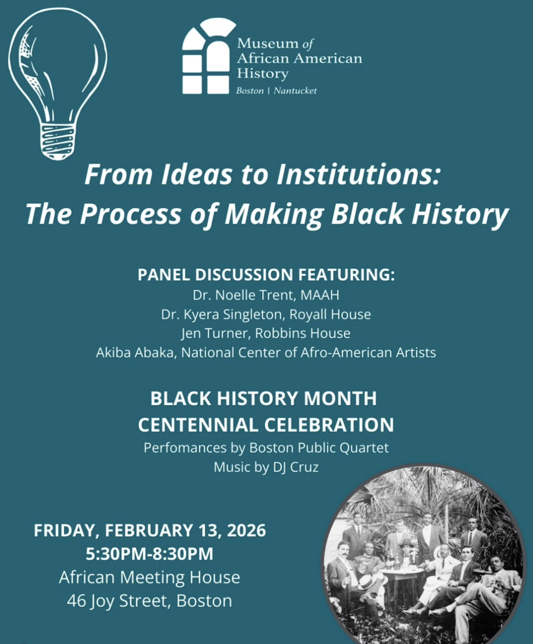 Then join the after-party with our Centennial Celebration of Black History Month! Performance by Boston Public Quartet and music by DJ Cruz. Be part of shaping and celebrating Black history with us