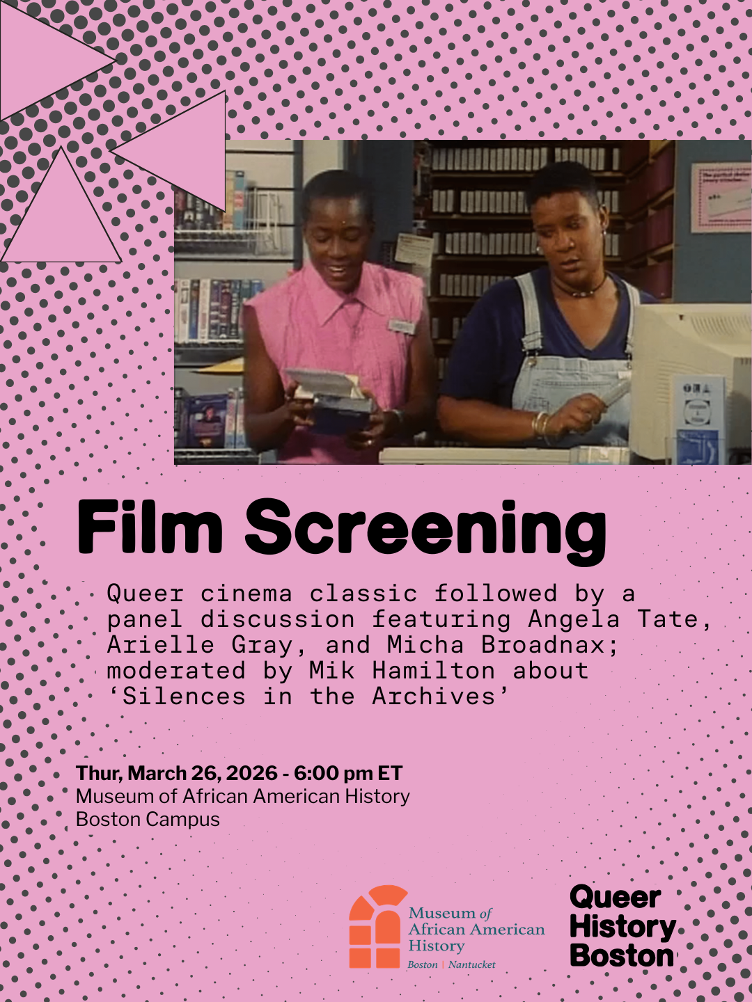 Join Queer History Boston and the Museum of African American History for a special screening of The Watermelon Woman (1996), Cheryl Dunye’s groundbreaking debut and a defining work of New Queer Cinema. Followed by a panel discussion on “Silences in the Archives,” exploring the gaps, erasures, and hidden narratives within historical records.