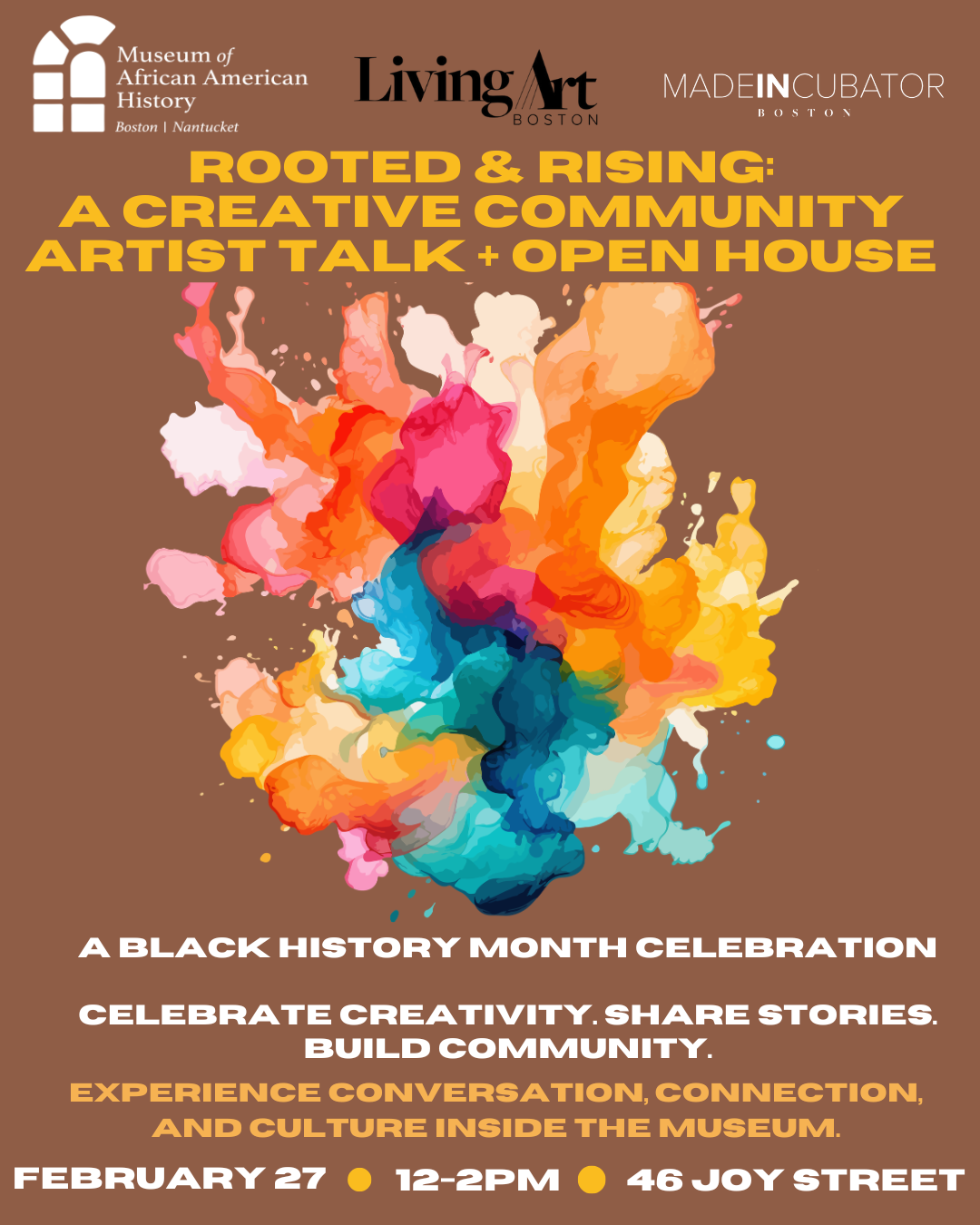 Celebrate Black History. Creativity. Community. Join us for Rooted & Rising, a FREE Black History Month celebration at the Museum of African American History! Explore culture, creativity, and connection inside the museum . An entrepreneurship workshop powered by JPMorgan Chase will be available following the event. Workshop space is limited — don’t wait!