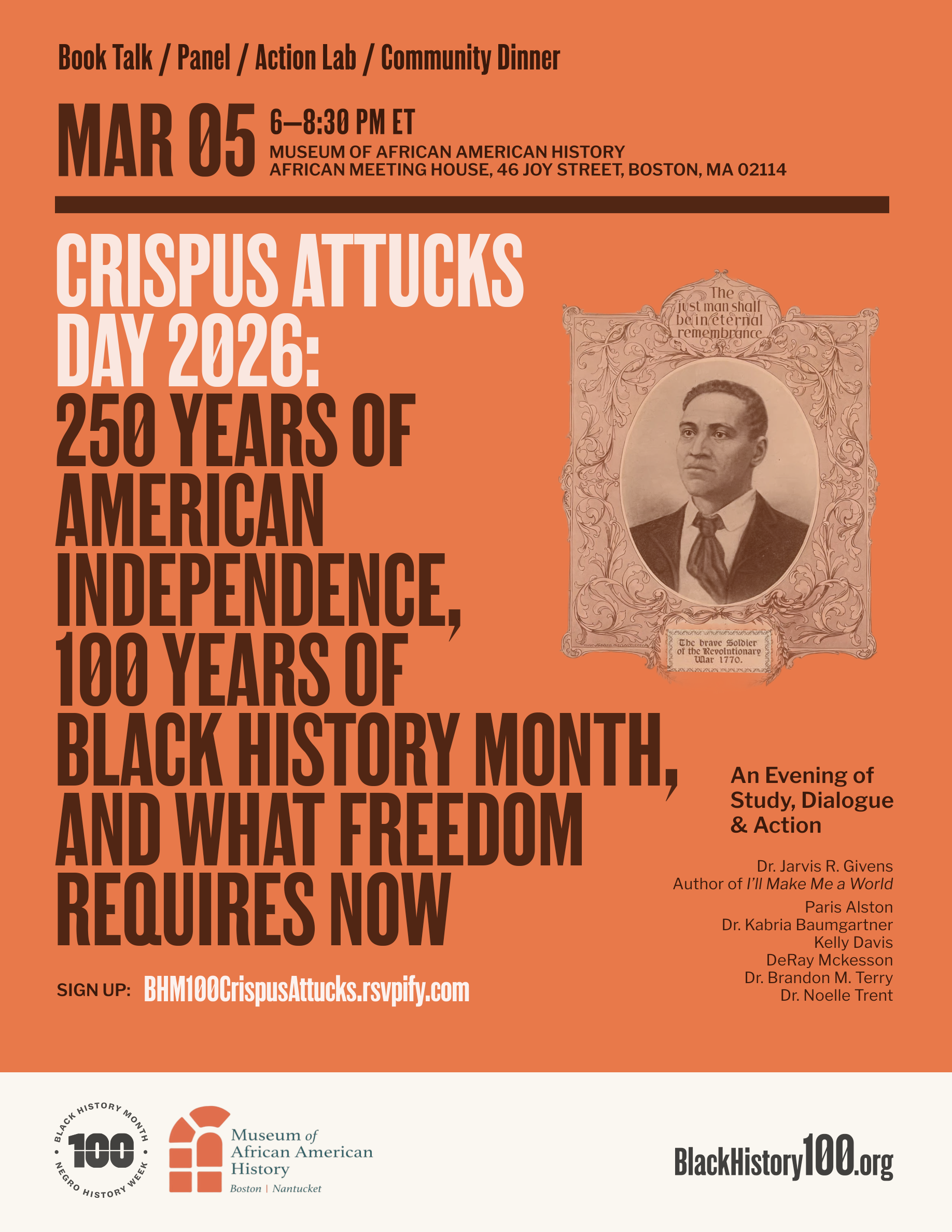 On the anniversary of the Boston Massacre, MAAH & BHM100 invite you to reflect on what freedom means 250 years since the American Revolution and 100 Years since the inception of BHM.